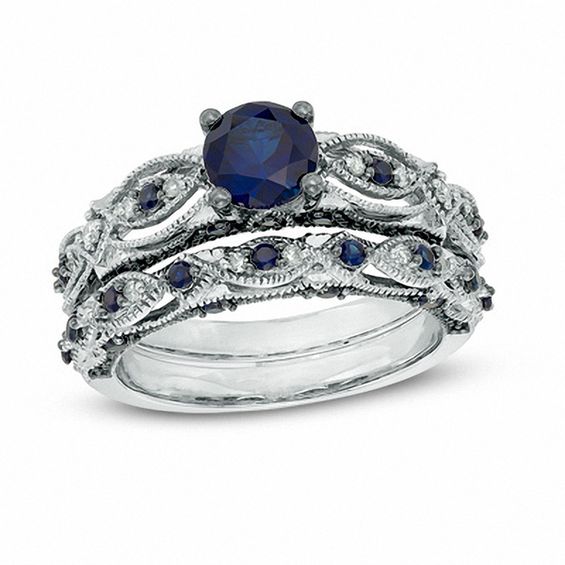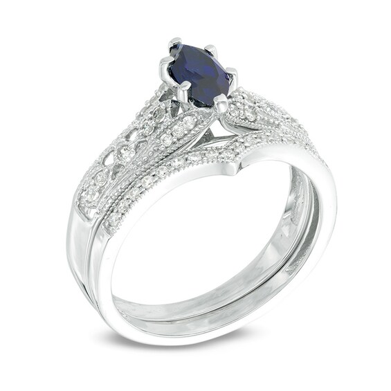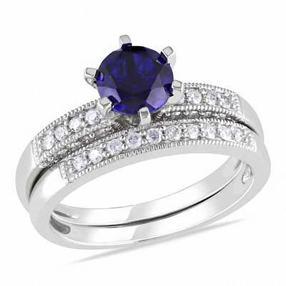 7.0mm Lab-Created Blue Sapphire and 3/8 CT. T.W. Diamond ...